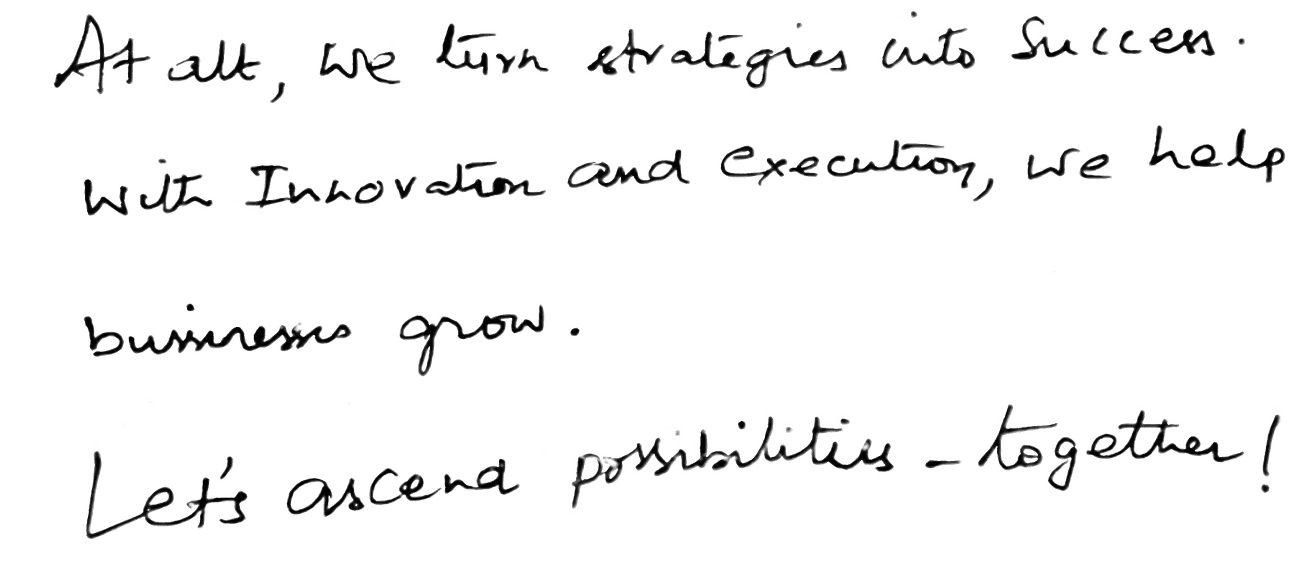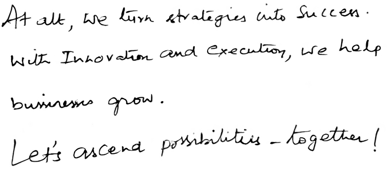 At alt, we don’t believe in one-size-fits-all solutions. Every business has a story, a market, and a unique set of challenges. Our mission is to bring clarity, direction, and strategy to your journey—whether it’s launching a brand, optimizing revenues, or scaling operations.